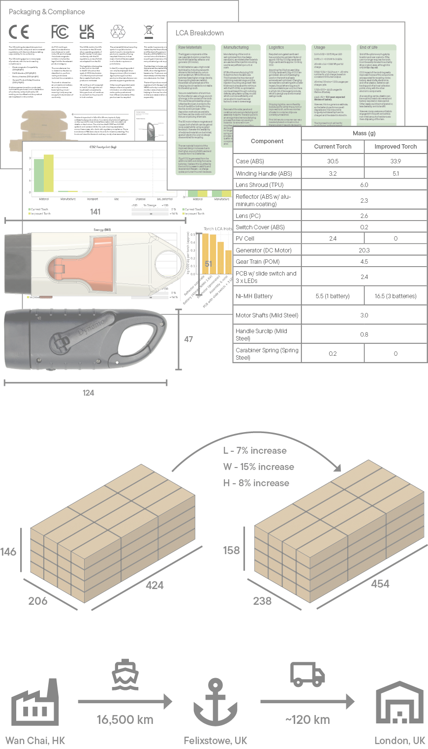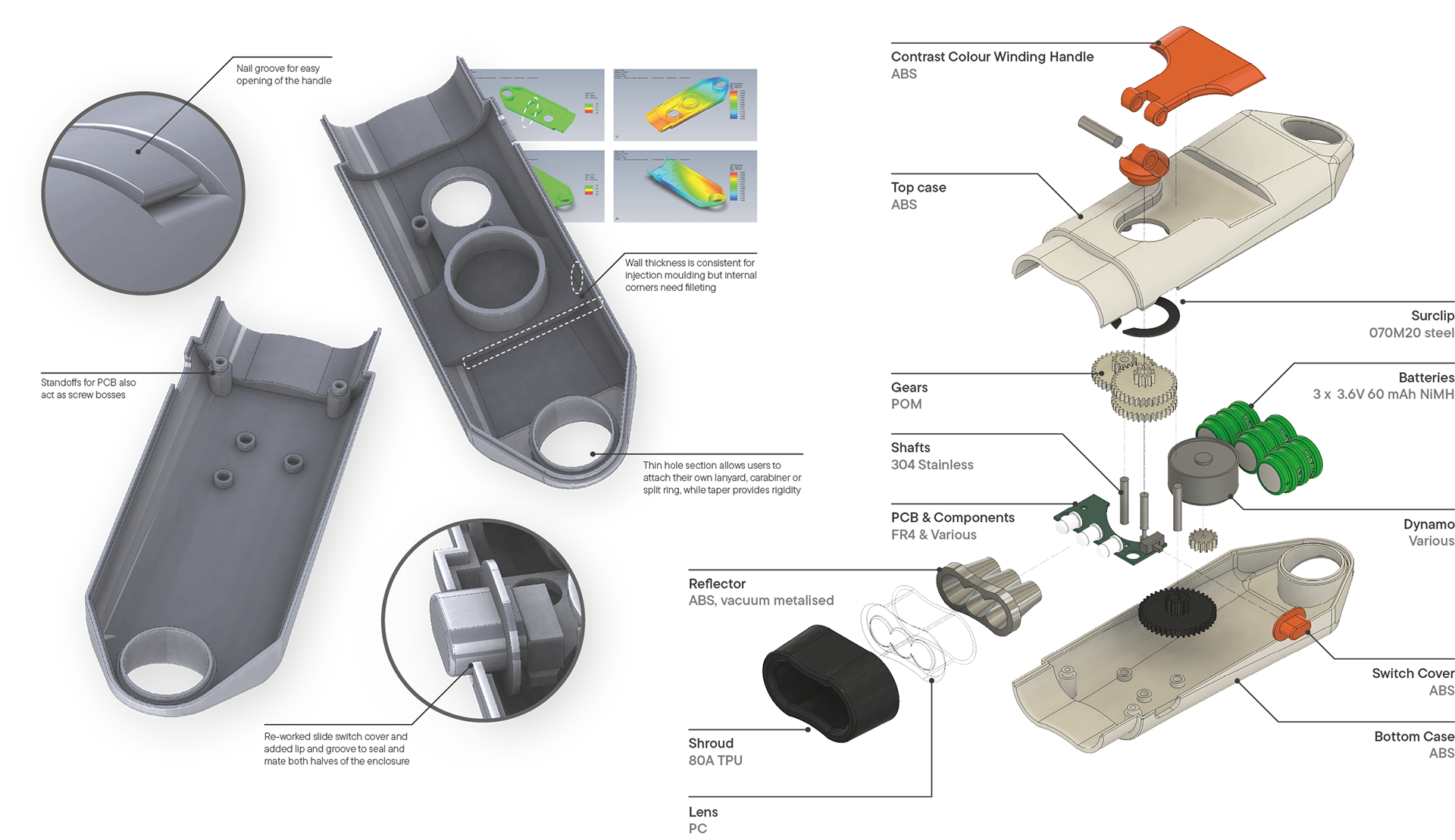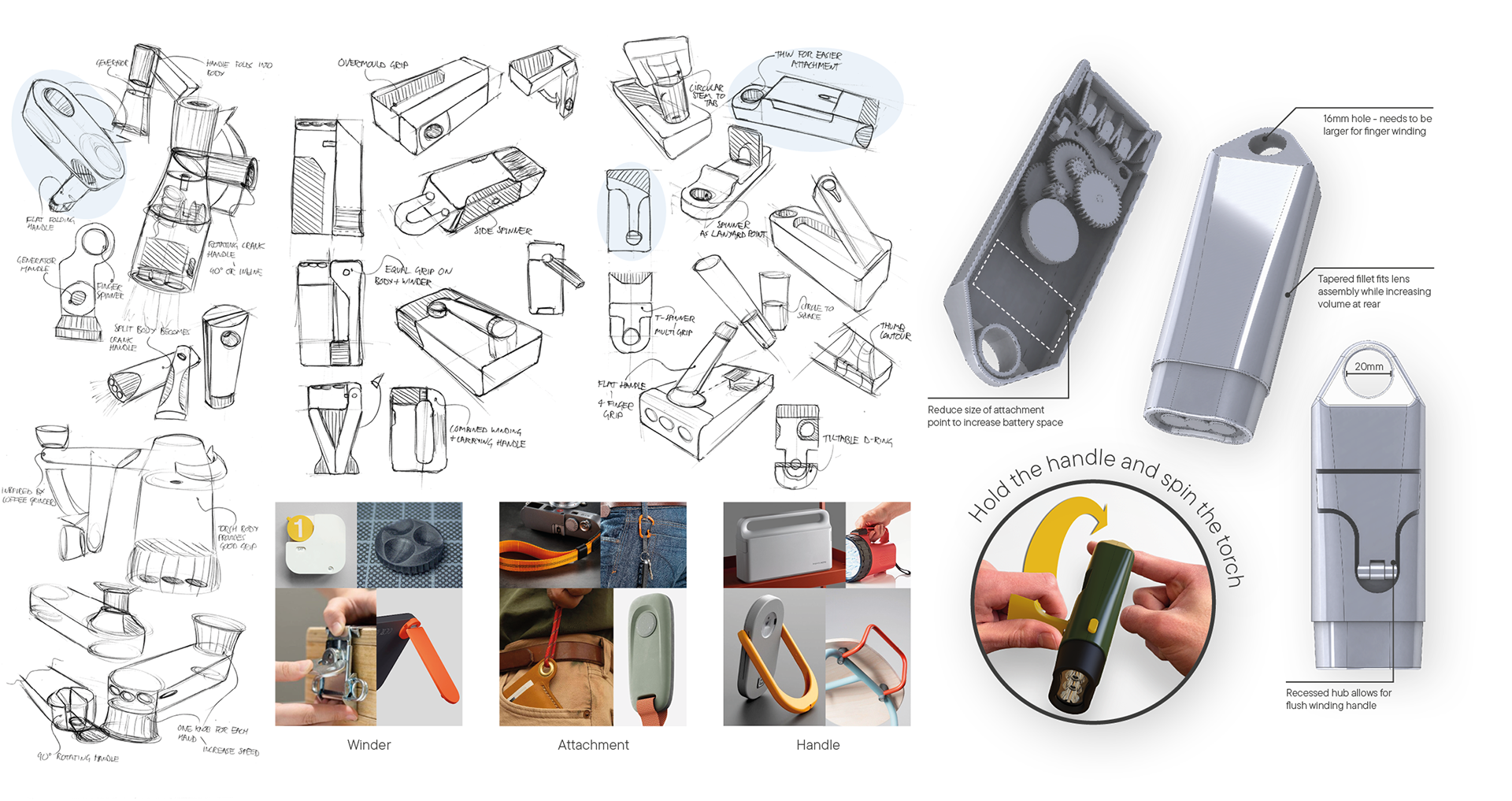 There is no space in the current torch to increase the size of the battery. The case and carabiner need to be redesigned to allow for this and a more ergonomic winding handle.